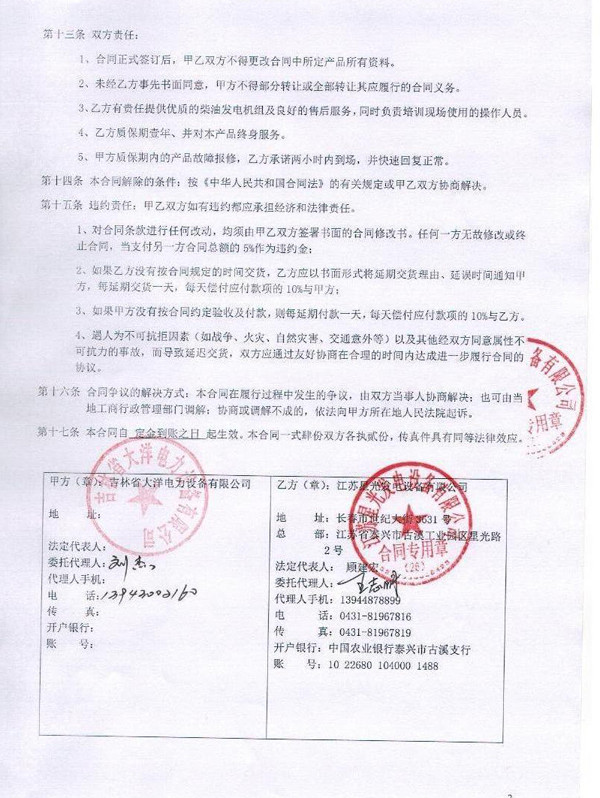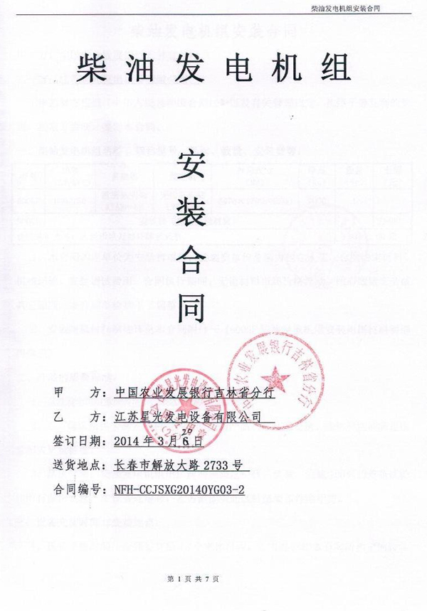 中國農(nóng)業(yè)發(fā)展銀行吉林省分行柴油發(fā)電機組安裝合同