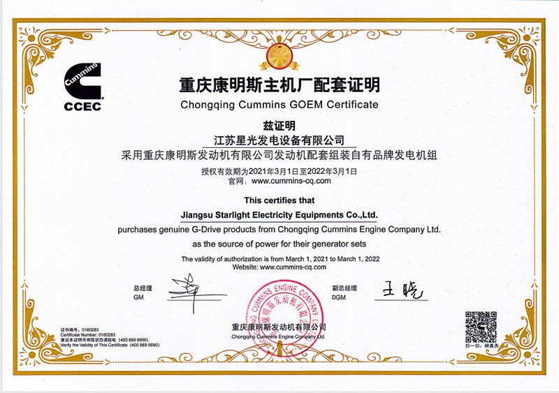 重慶康明斯主機(jī)廠配套證明